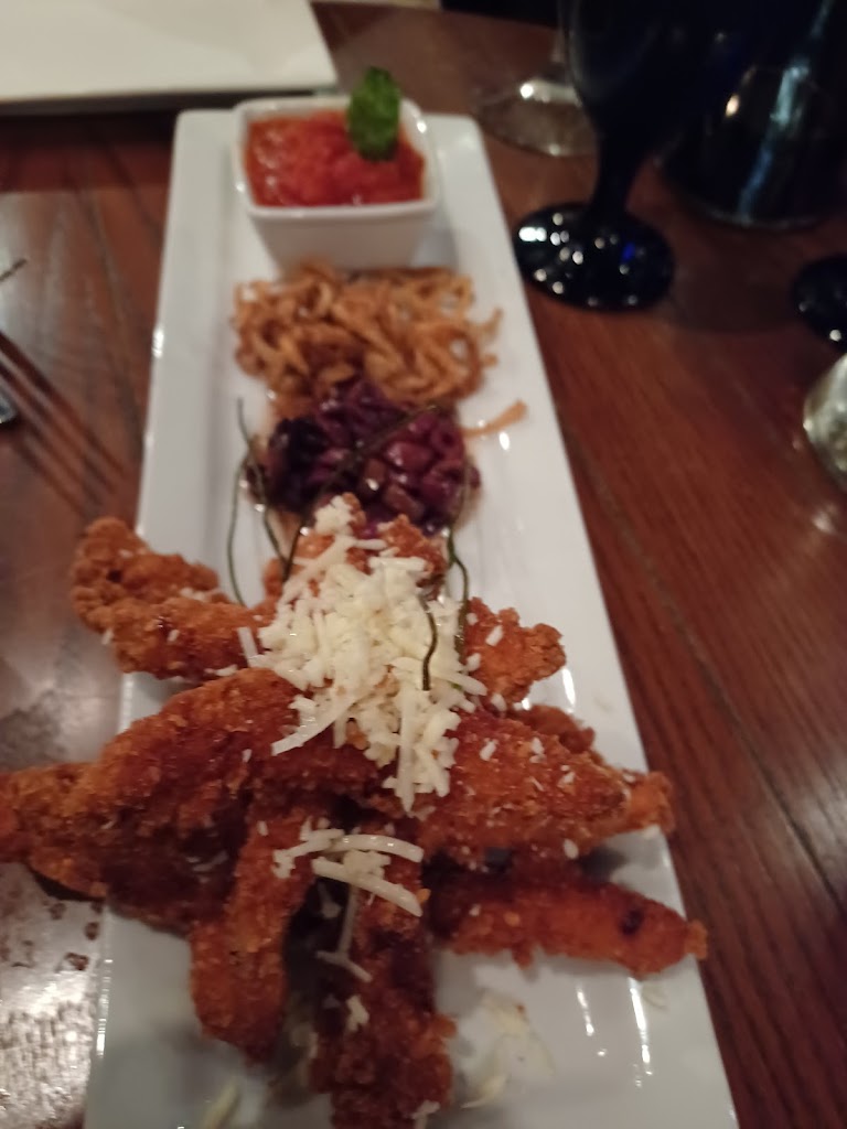 Excellent potstickers and Bruschetta. The wine and blueberry mule were great. Eno Vino offers a selected menu of topas and small meals that surprisingly fill you up. Service is exceptional. Staff is courteous and offered good suggestions, knew the menu well. The servers are masked and wear gloves. The best part of this date night was the desert, a fried cheesecake. Amazing!!. The atmosphere is romantic and intimate. Perfect get away for a couple or group.