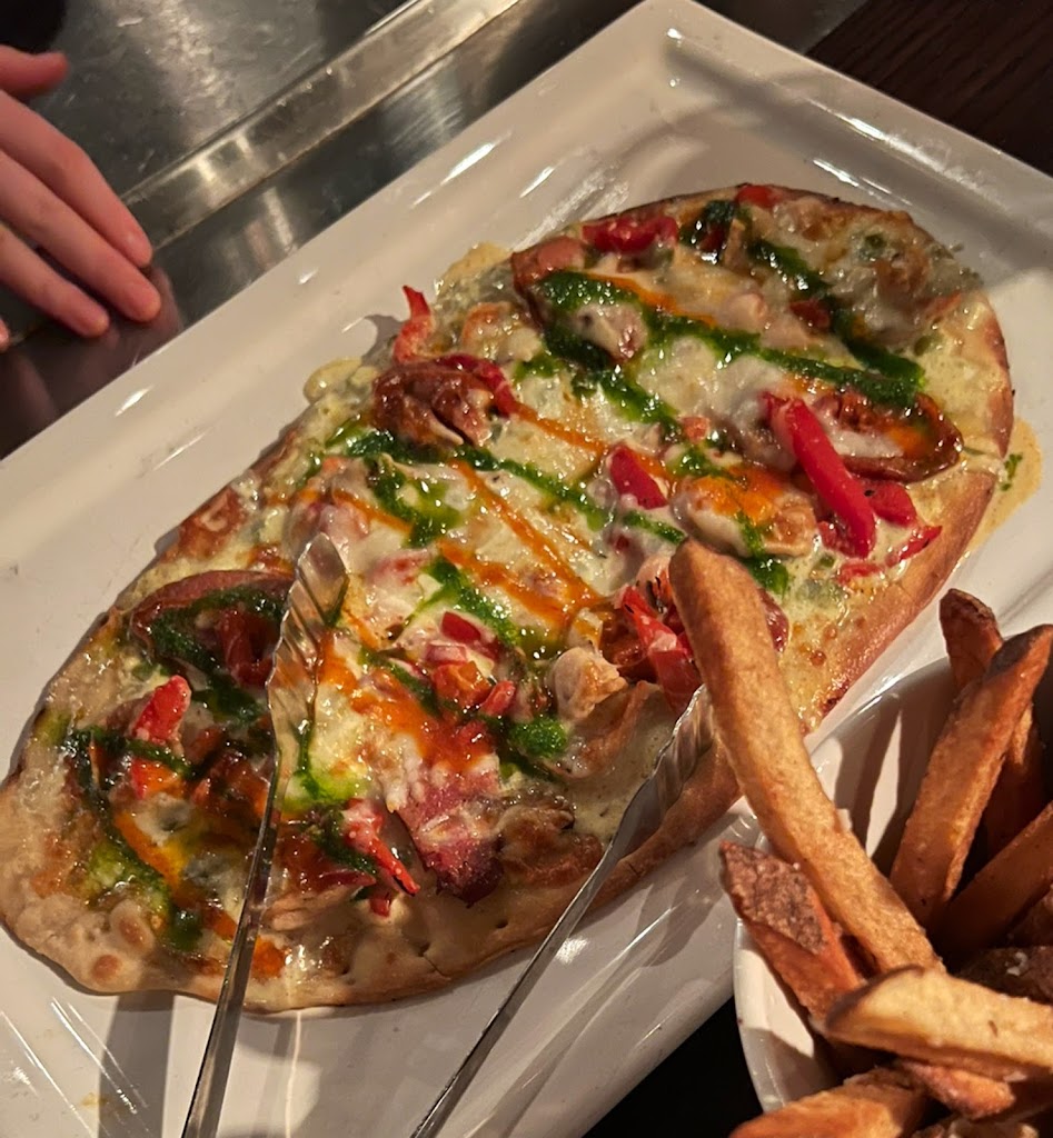 This upscale date night spot on the west side is definitely one of our go-tos. One of our favorite shareables is the Thai Chicken Flatbread.