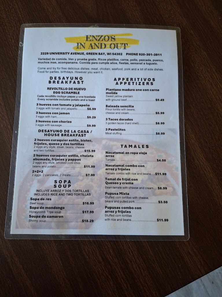 bringing a variety of flavors and seasoning come to enzos in and out and you will find out!