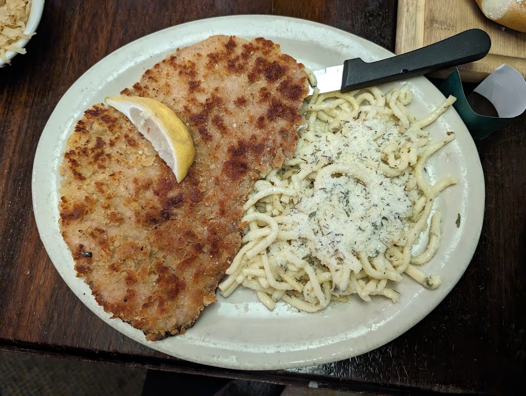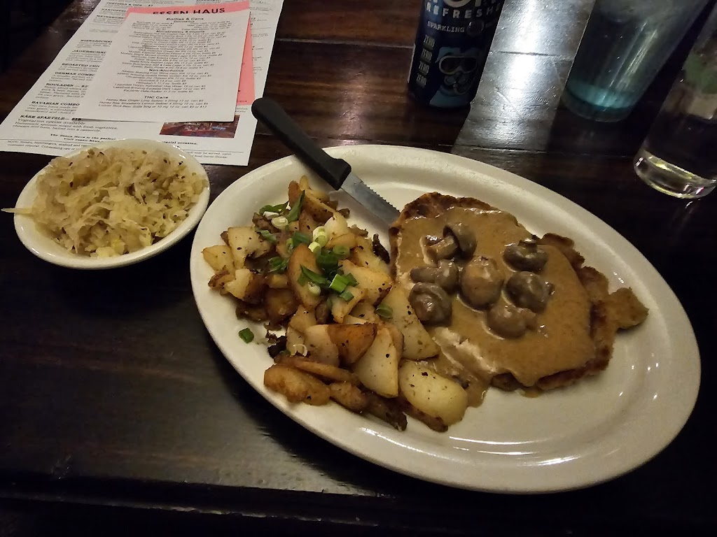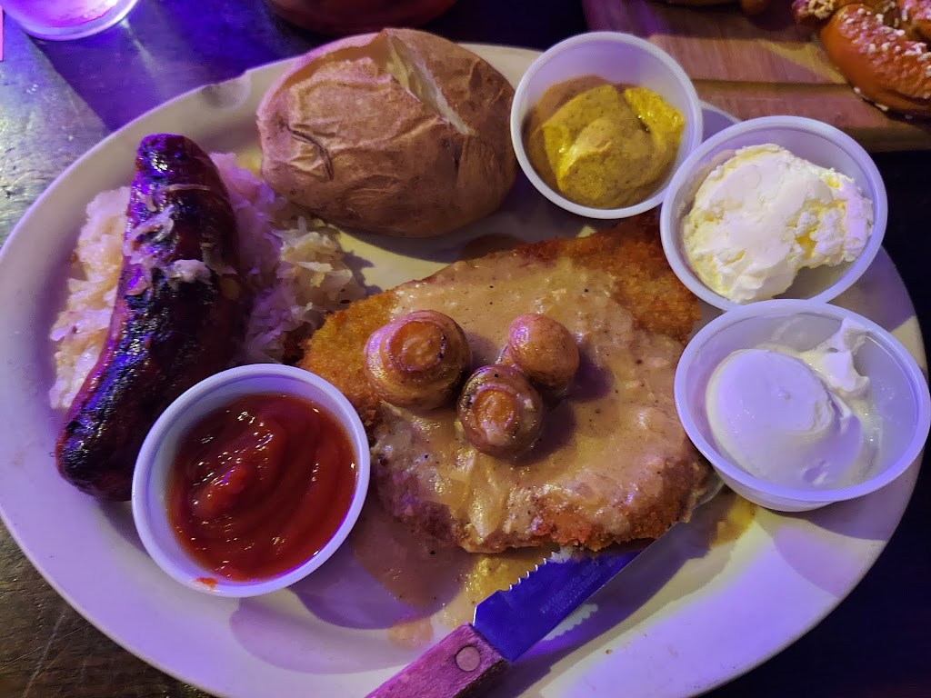 I had the saddest schnitzel, sausage, and sauerkraut of my life. It was terrible and I only ate it because I feel bad for spending money for those. I still regretted finishing my food afterwards because it was terrible.