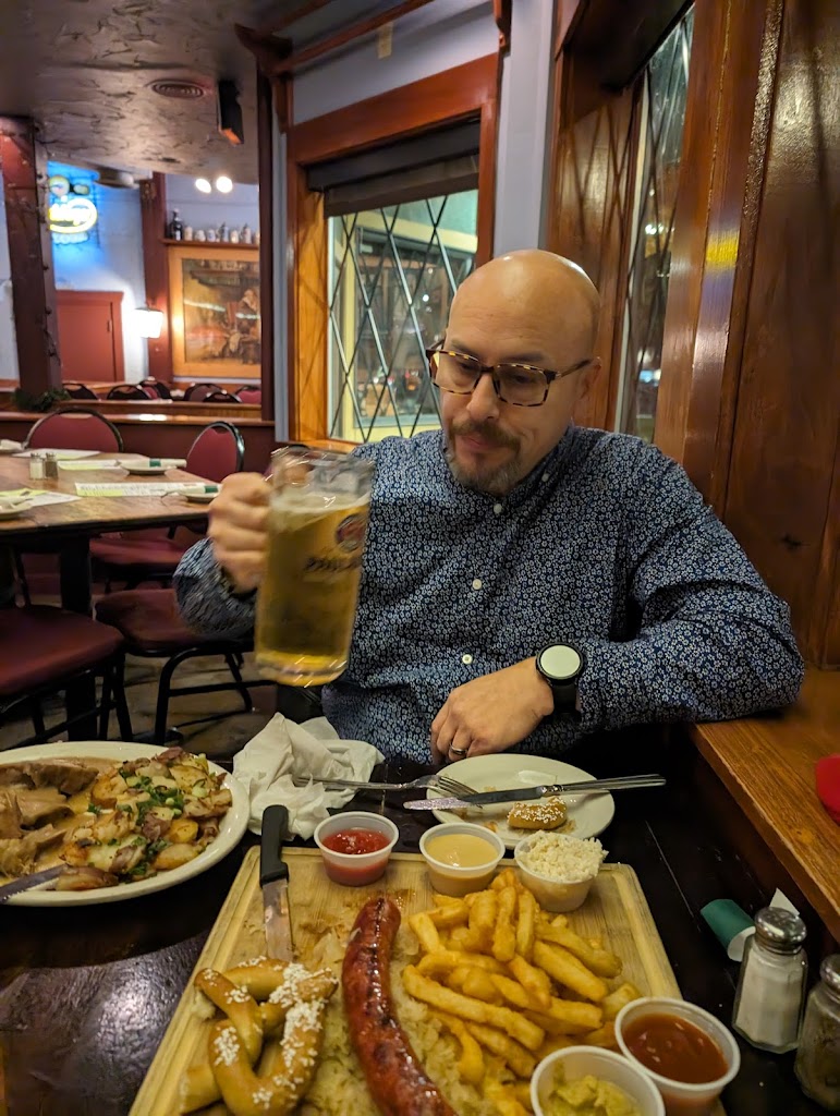 However... the rest of the food was just ok. This sausage platter was overpriced at around $25. The sausages were not as good as they should have been. The sour kraut was just not good and I typically love it. I also had cheese curds and a pretzel with the table. The food is solid, not great. But you don't go here for the food, you go for the experience. And that is unbeatable.
