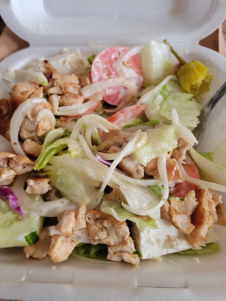 Best gyro in town and it comes with a delicious Greek salad and fries.