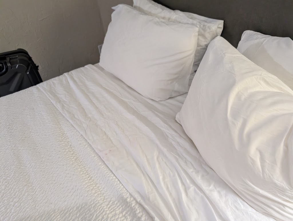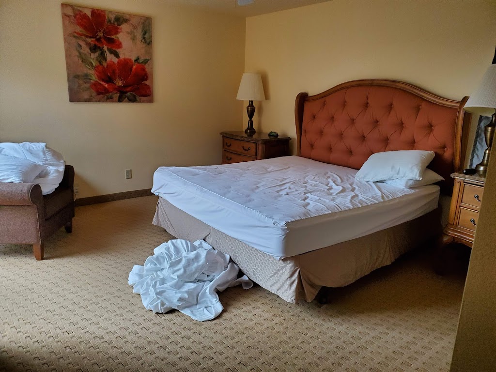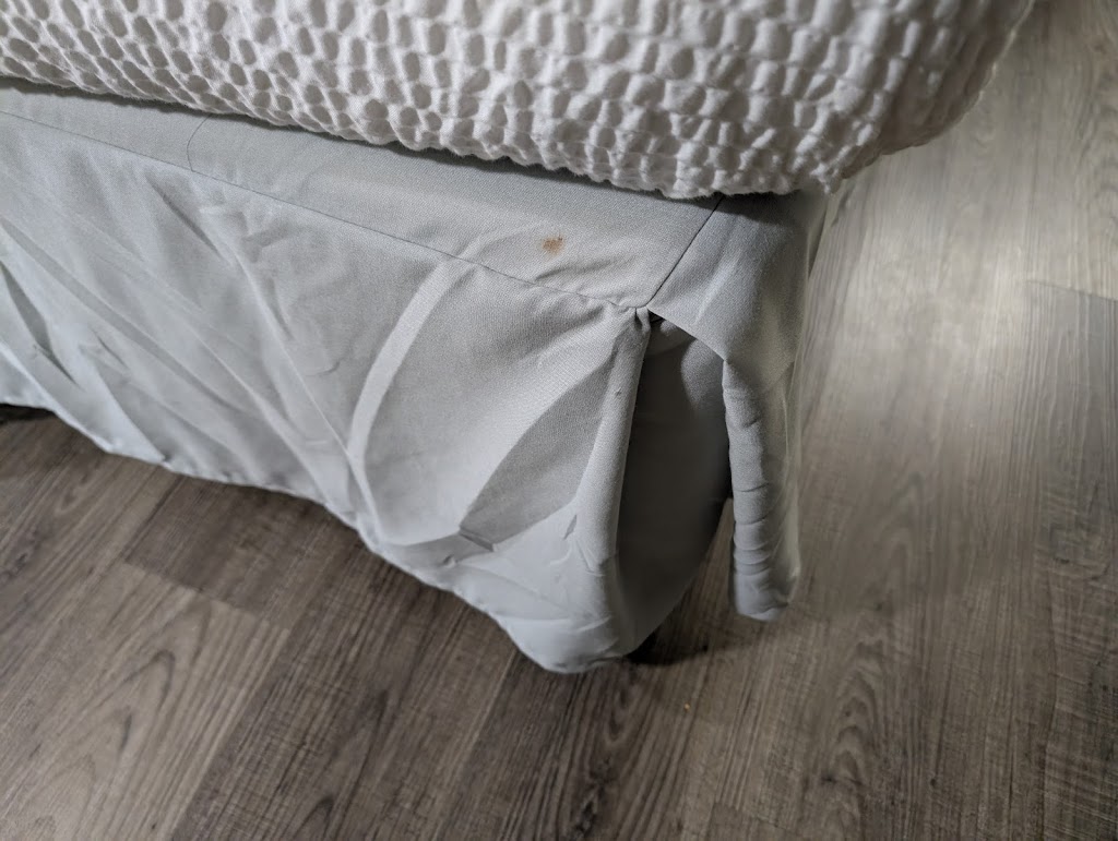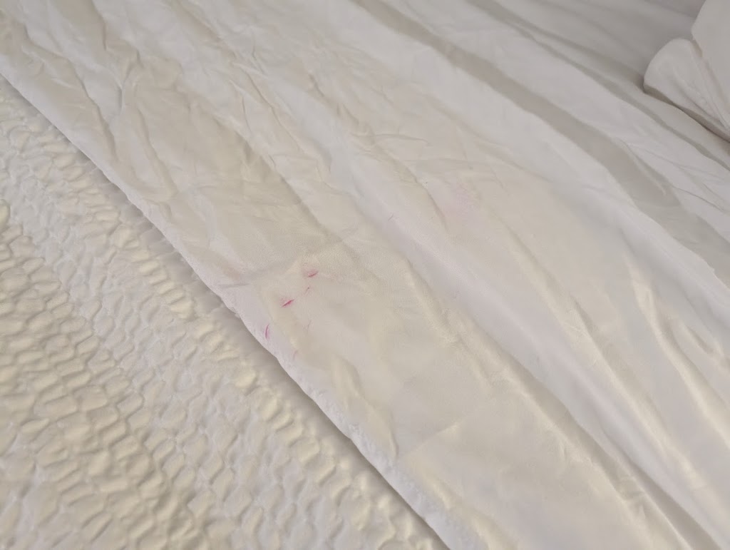 - 4) The bed had a brown spot on corner and pink staining at the top where head rest