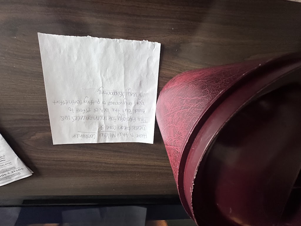 - 8) I then packed up my items and got back into my vehicle and when I went to drop off key and check out I was finally offered a room change but declined since I had already been told nothing they could do and I had already packed my vehicle.