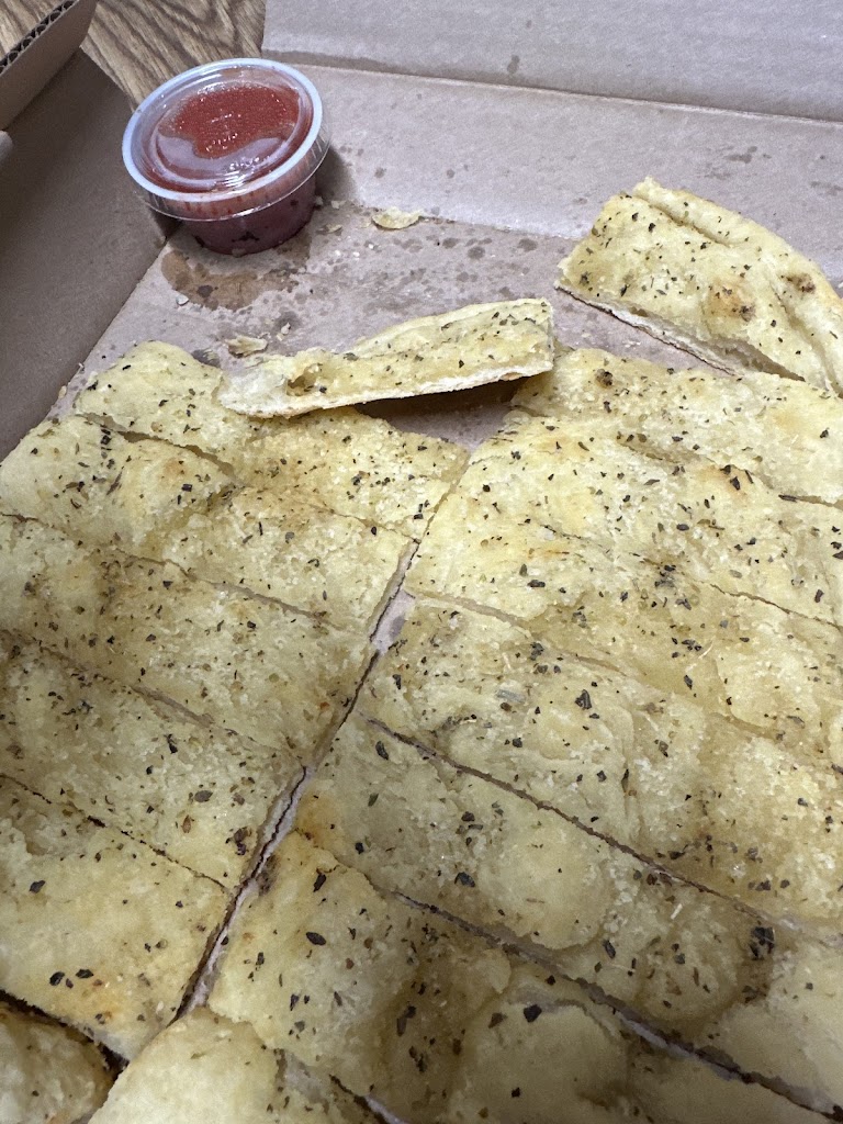 Consistently good pizza. Hot and fresh. Generous topping and a good crust. Cheese bread is better than garlic bread in my opinion. Timely order preparation as well. We generally do carry out.