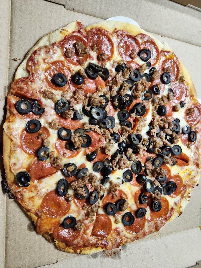 Ordered two largest just before closing on a Tuesday eve. Thanks to the great ladies for making it quick as they were already cleaning. Good pies. Crust was amazing loved the sauce. Had the cheese and supreme. Homemade all the way.