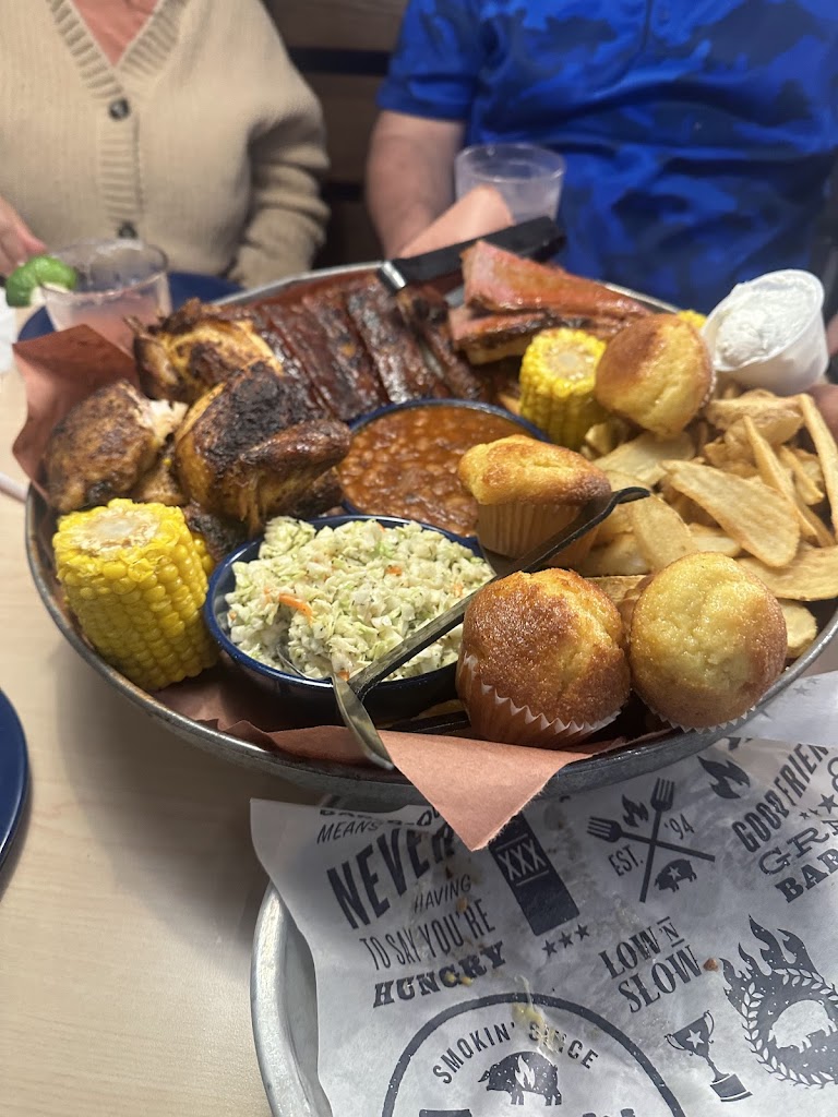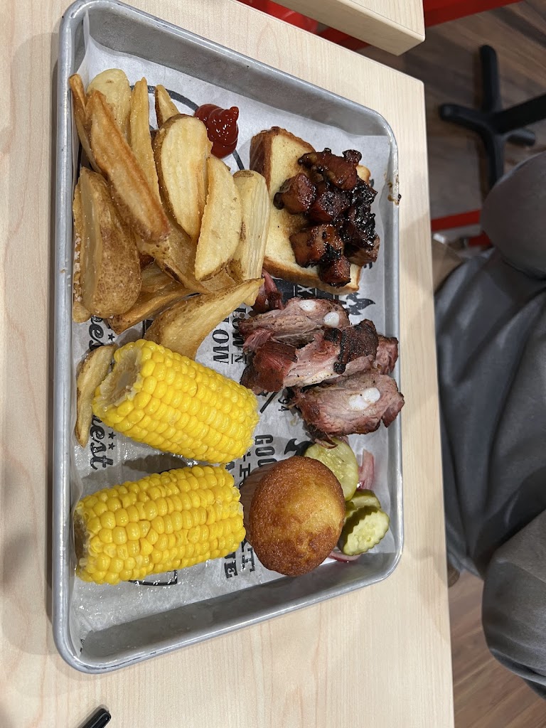 To be specific, my food was mediocre at best and I didn't get everything I ordered. The ribs tasted old, the fish tasted old, the brisket was horrible, the mac and cheese was dry. The cornbread and corn was the star of the show from the platter I ordered. It may be better on certain days or depending on whose cooking maybe.