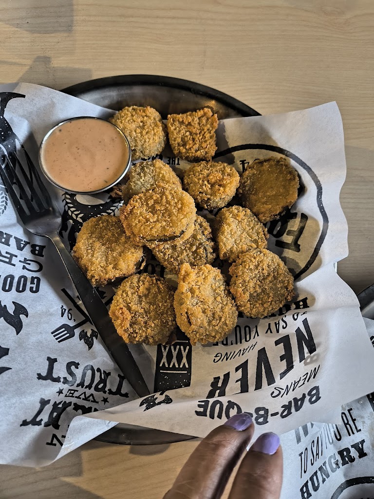 First time tasting the fried pickles and the fish, OMG LOVE, LOVE, LOVE.