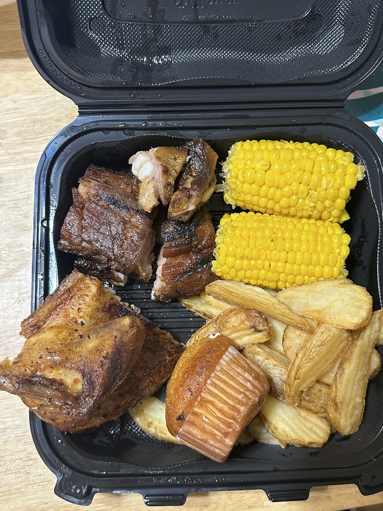 I was really disappointed with my visit. I was seriously craving some good BBQ today, and my husband even made a special trip to get it for me. But when we opened the box at home, I was so disappointed. I used to enjoy this place, but it’s gone way downhill. I paid $21 for just a tiny piece of grilled chicken and a few rib ends – seriously? That’s nowhere near worth the price. On top of that, the food was dry and just not good at all. It feels like a total rip-off. Sadly, I won’t be coming back.