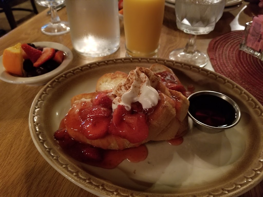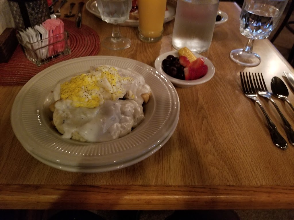 We stayed at the motel and had breakfast here (only served on the weekends). The motel was nice, but don't expect anything fancy. Breakfast was really good. Fresh fruit means fresh... we had oranges, grapes, cherries, and strawberries. It's 4 miles out of town, but worth the drive.