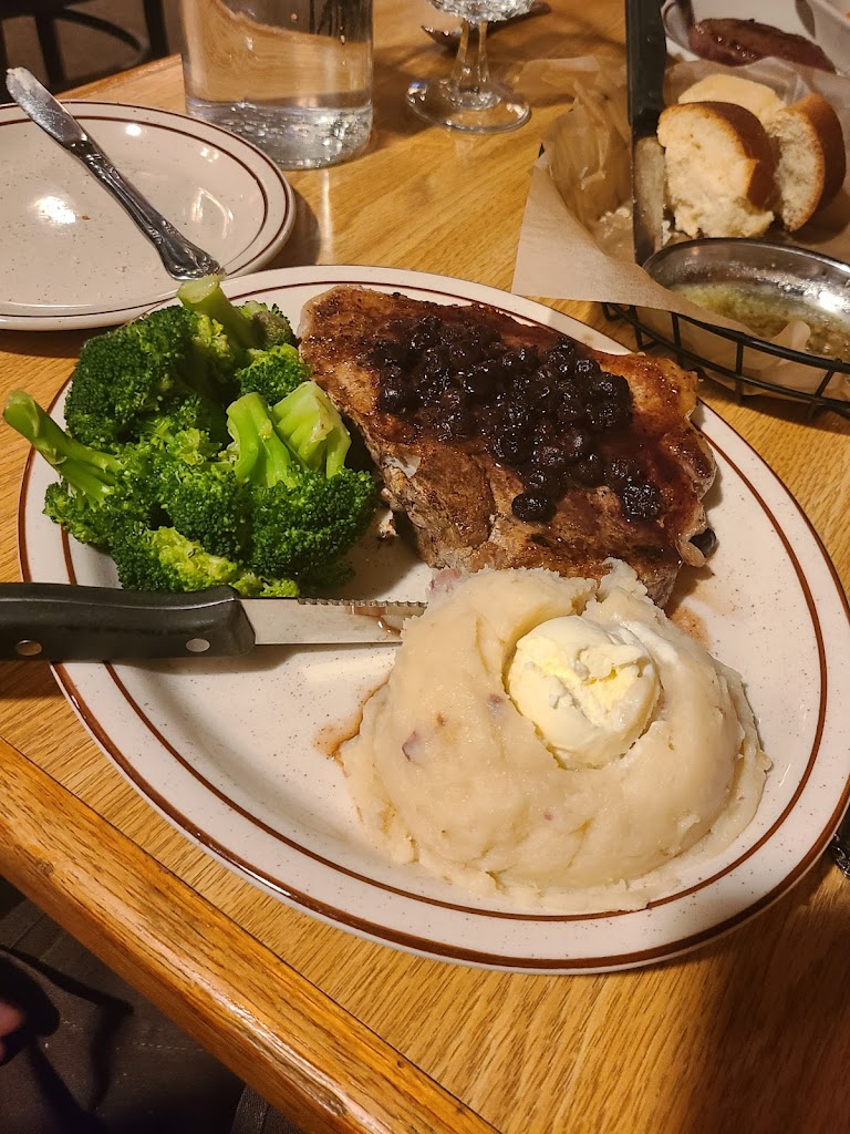 Fantastic! The Ribeye was terrific. A great place for dinner and drinks. We had a great time at the bar after an excellent dinner. The service was great. We stayed in the motel also, rooms are clean and have everything you need. We will be back!