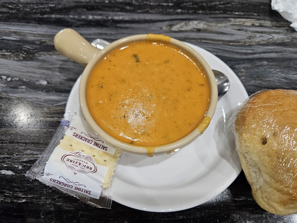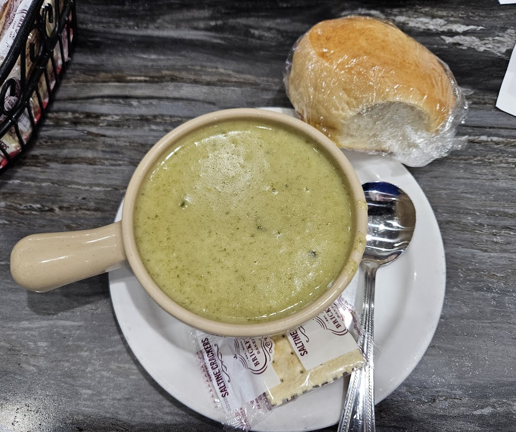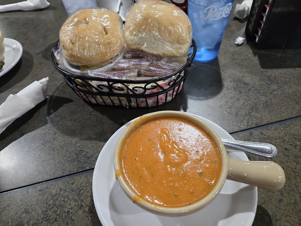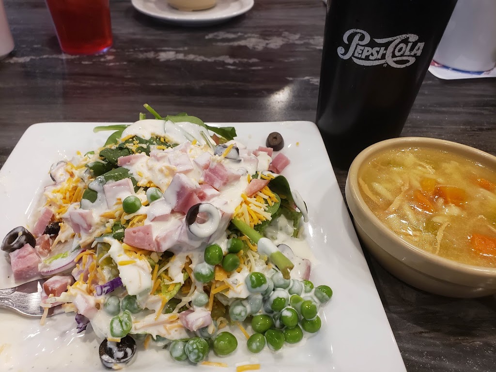 Had soup and salad bar. Everything was fresh and very good. Would highly recommend the stuffed green pepper soup. The dinner rolls are also very good. I liked that each roll was individually wrapped.