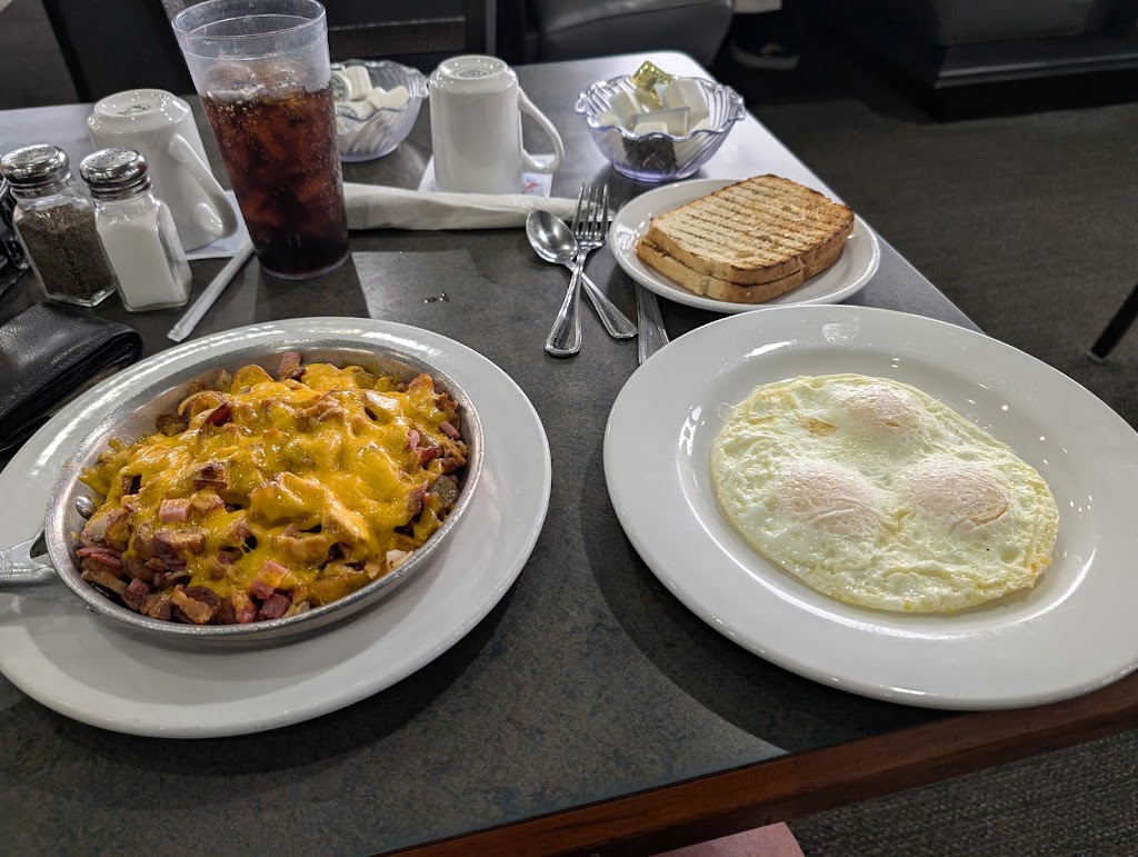 Stopped here with the family for breakfast. Everything was great including the sirloin steak and eggs. Kids all had chocolate chip pancakes and we had a skillet as well which was huge. My only minor critique was that the coffee left room for improvement.