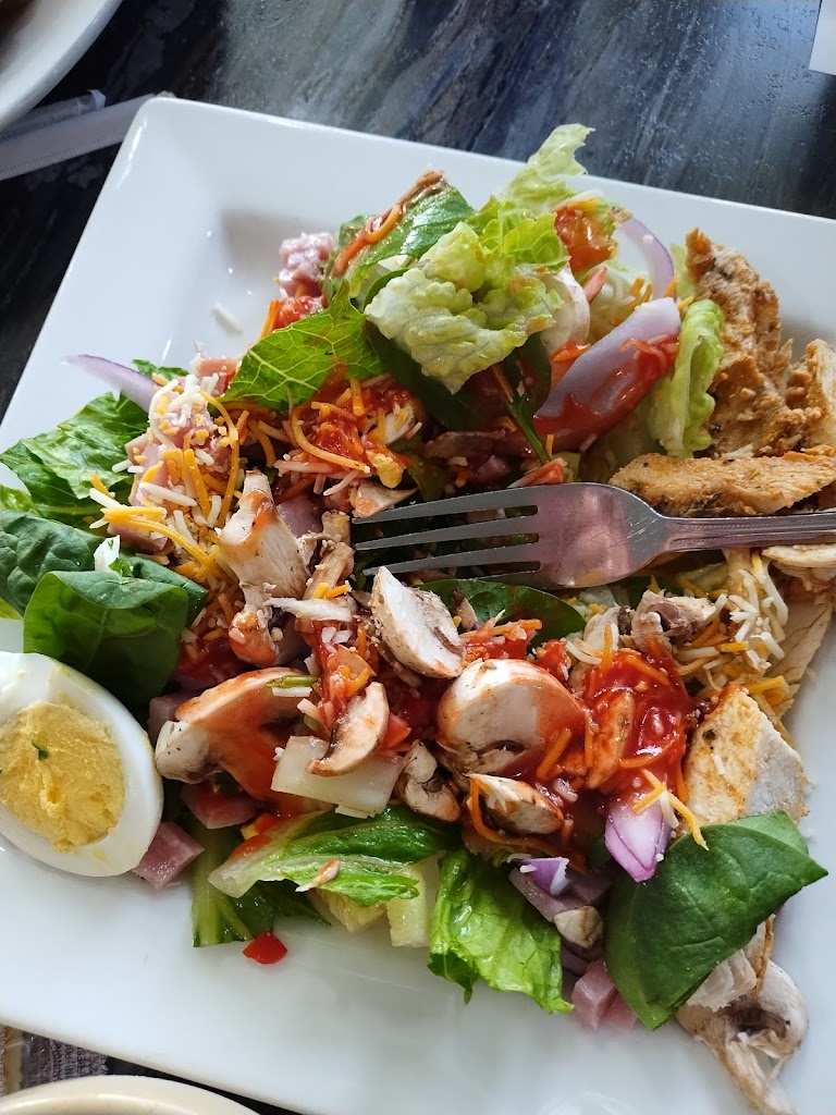 The food was delicious! I got the grilled chicken. It was flavorful and moist. I was impressed with the vast options in the salad bar. I highly recommend it.