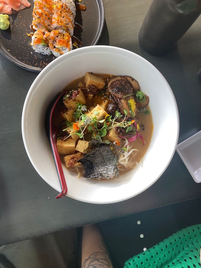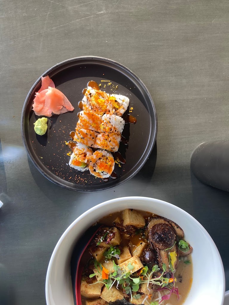 We loved this place, we visited for a weekend and ate here twice! Thursday and Saturday night we came in for dinner; over the course of our two meals we had both vegan sushi rolls, the tofu and mushroom appetizer, and both meals we got the vegan ramen it was AMAZING. All of it was incredible. Our server Danny was fantastic, we were lucky enough to have him both times we visited and he was so enjoyable to chat with.