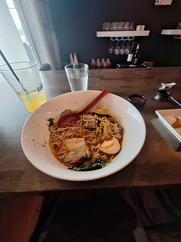 First time visiting! Not a big fan of spicy food so I got the Pork Ramen Bowl! Absolutely loved the egg in it! Staff was wonderful and super helpful if you didnt understand the menu 100%! Loved the experience and would return!