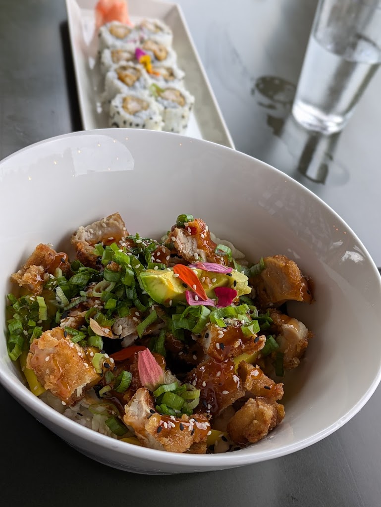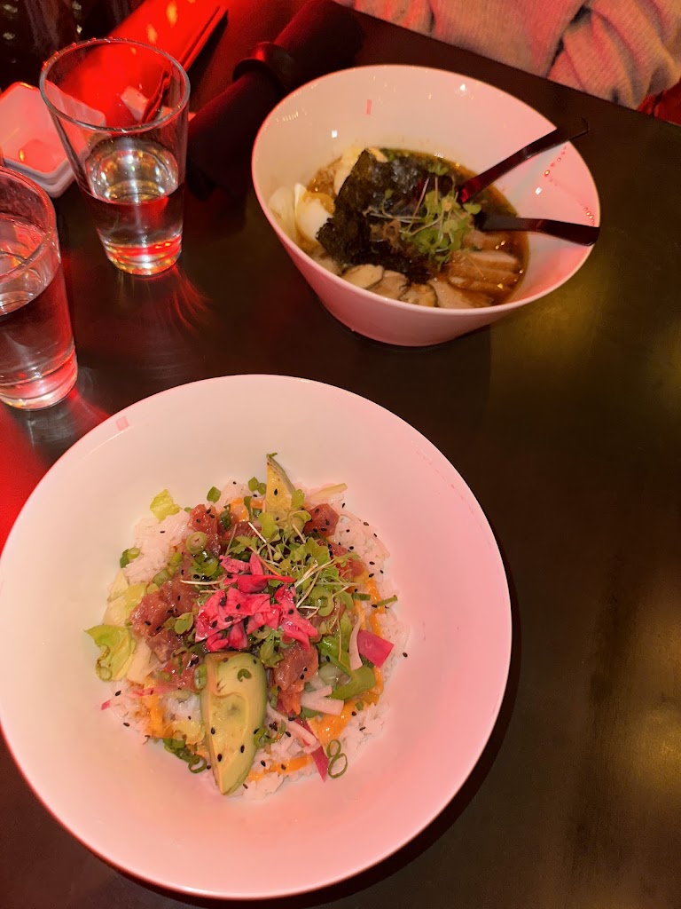 Sushi, ramen, pot stickers, and poke bowl. Everyone enjoyed their dish. My only complaint, is that the poke bowl came with lettuce, and that was the only ingredient not listed on the menu description. I donβt like salad lettuce in my poke bowl, had it been listed on the menu, I would have either asked to have to removed, or I would have ordered something different.