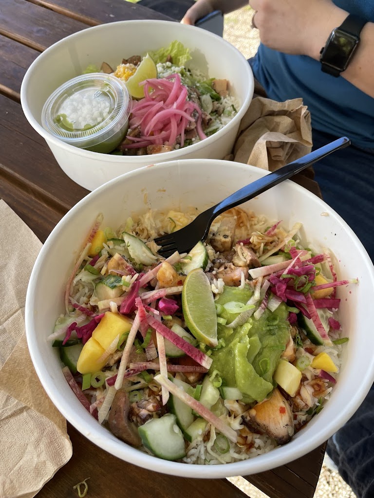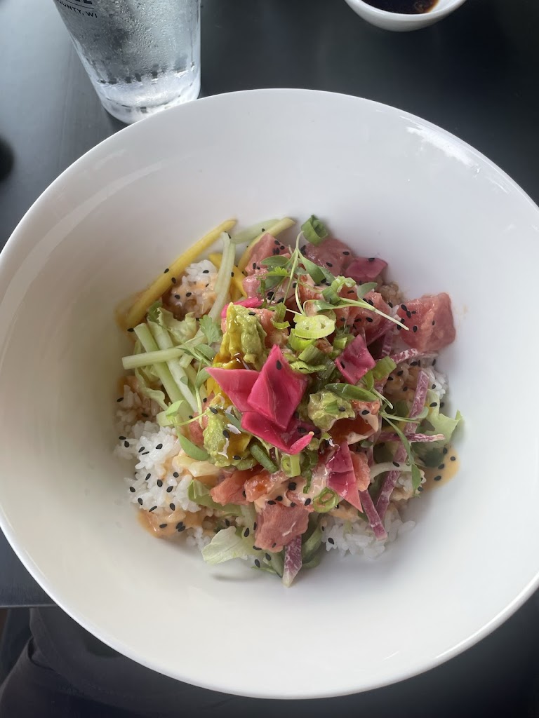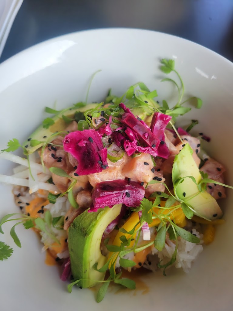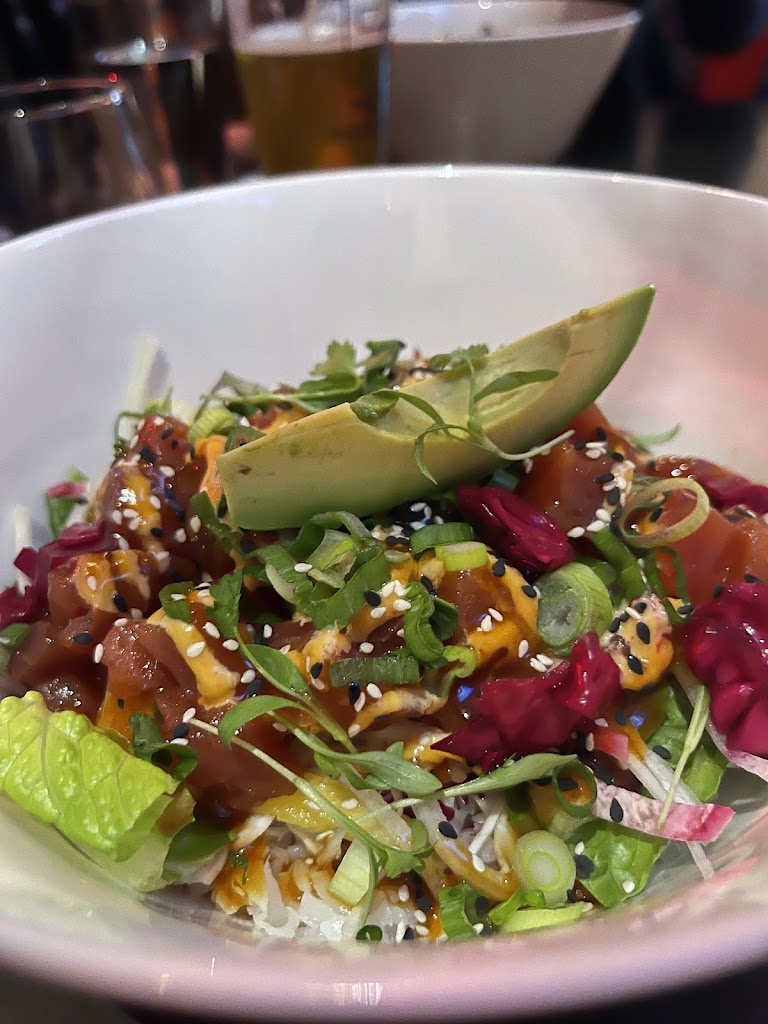 We had poke bowls. Fish very delicious! I love the pickled items and the spicy sauce! So fresh and bright, perfect for dinner. I went dancing afterwards.