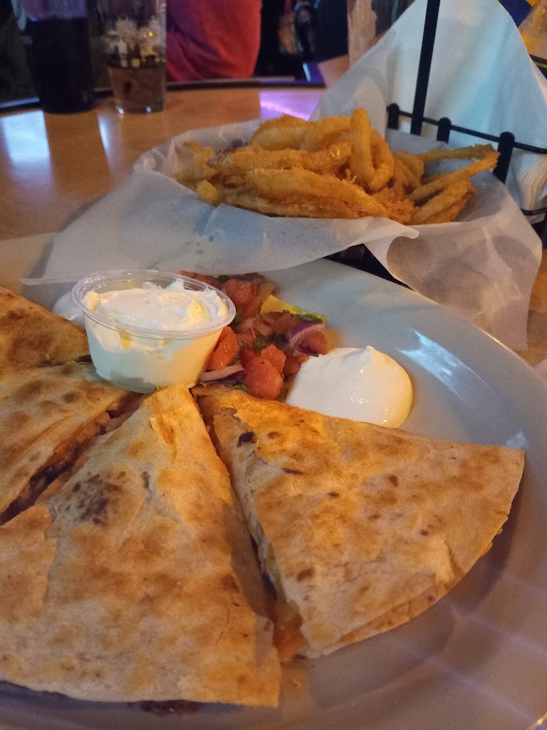 Food was hot and Delicious! All four of us loved the wraps and burgers. It was crazy busy there on a Friday night, but we were not in a hurry. Staff was hustling, but very friendly. Ate and played Trivia at 7:00. We came in first place! Was a Fun night!