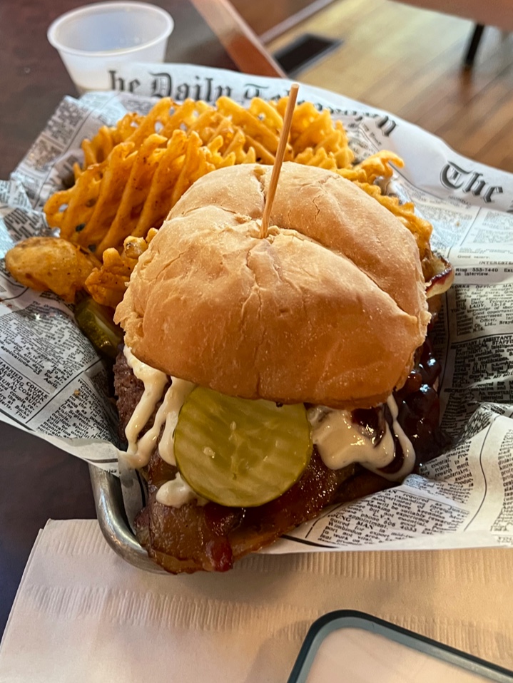 The overwhelming smell of cigarette smoke when you enter is a bit much. The burgers are ok. I got the Gorgonzola and the black pepper on the burger was a bit much. The cheese curds were just ok. It was not super busy which was good. Bartender/server was good. I probably wouldn’t go back.