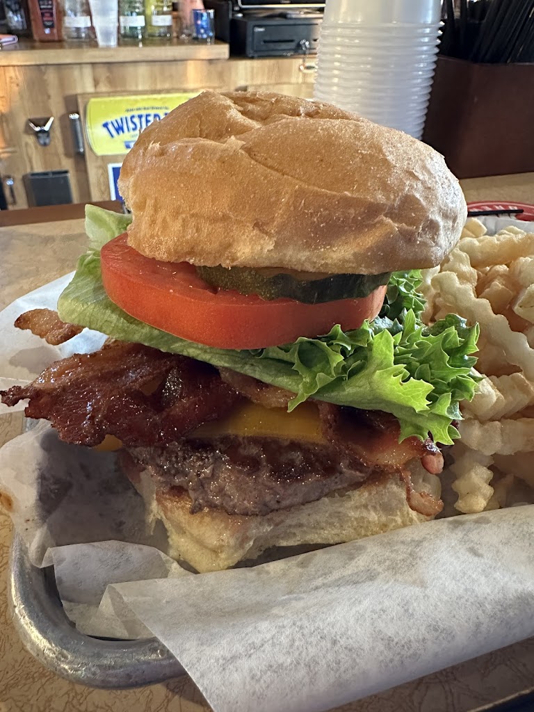 First timer. Great burgers, fast service and good vibes. We got the BLT burger with ranch and the Gorgonzola burger.