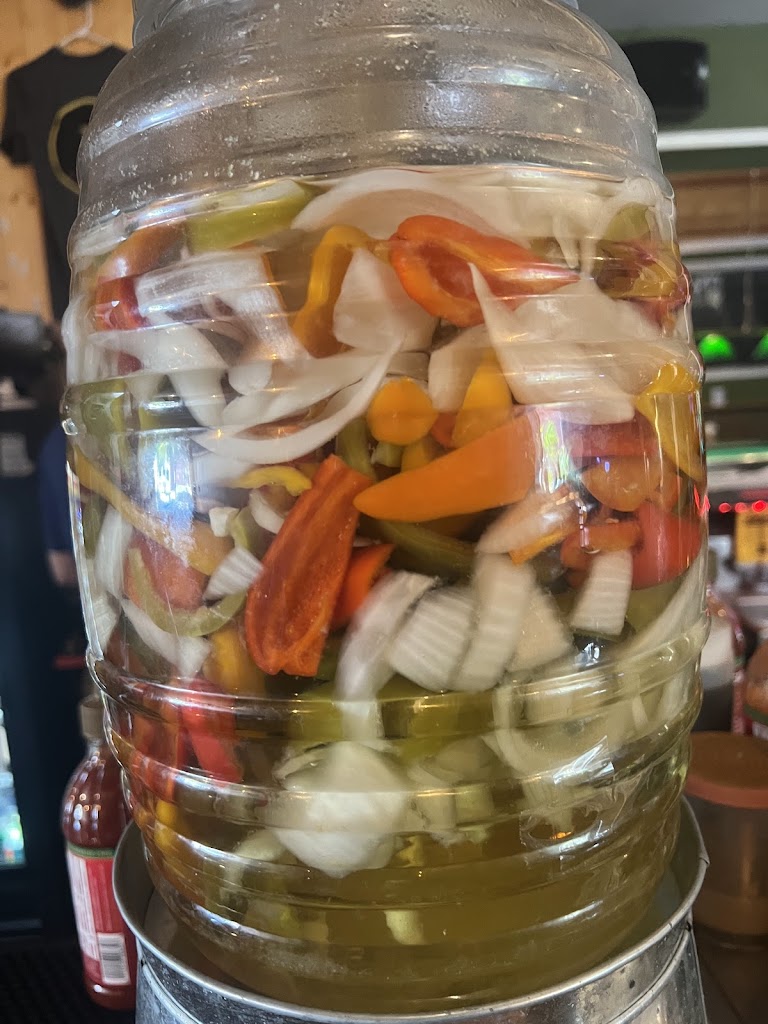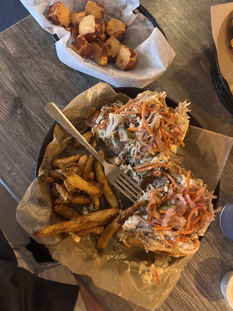 Standard bar setup. But the Viet pork sandwich was great. Had these nice lightly spicy cucumber pickles, a standard Viet veg mix on it. And some pretty spot on pork. Juicy and tender. Oh and the curly fries were a good contrast to the soft sandwich.