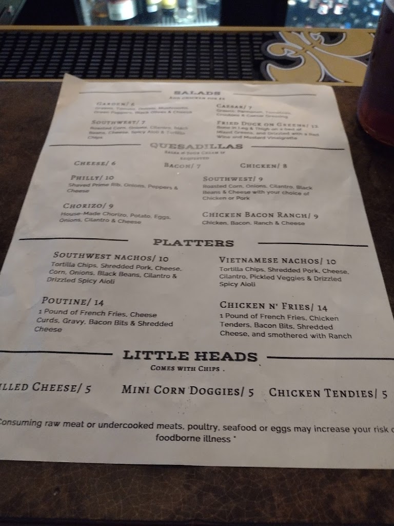 Food was really good, it was more then just your regular bar food. Portioned good and great flavor.