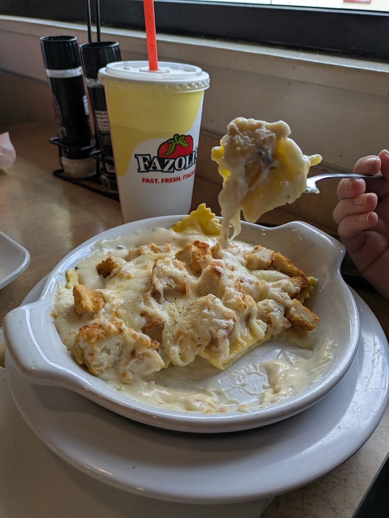 Food was delicious I don’t have a fazolis near me so when I travel and see one we stop.