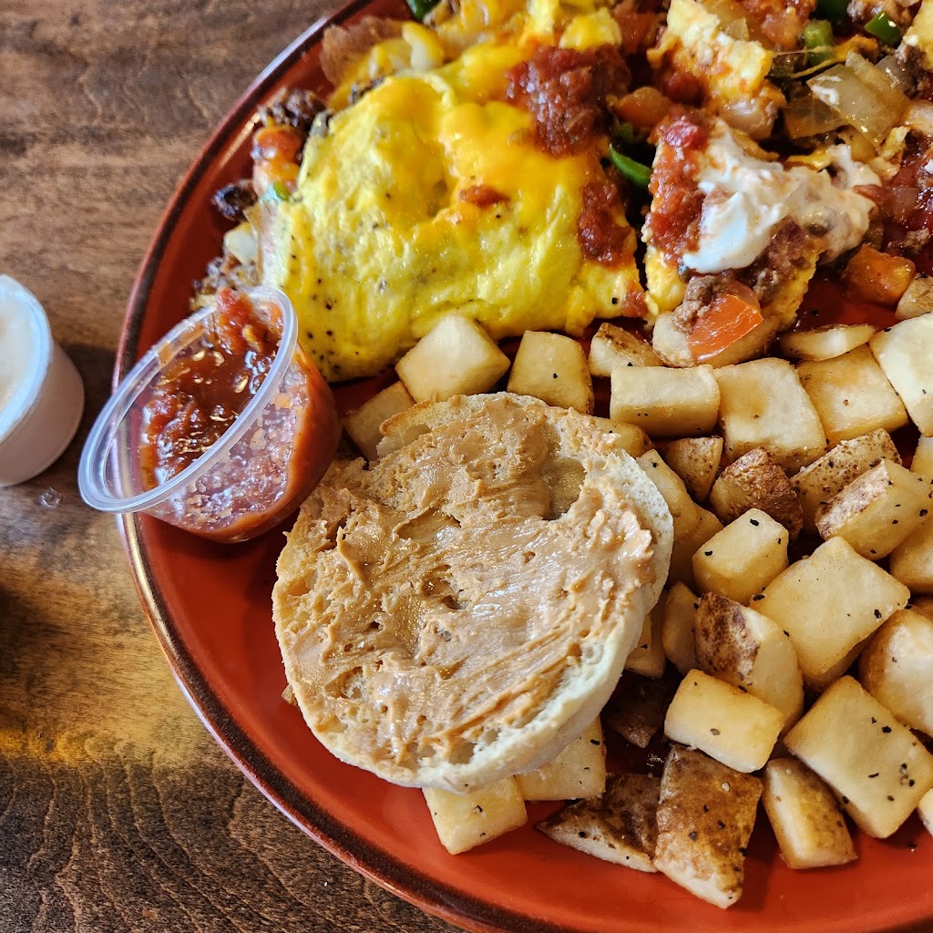 The name caught my attention as we drove by on the way to our hotel the night before, so I looked this place up on Google Maps. We had a late breakfast here the next day. The food was absolutely delicious! I had the corned beef hash; M. had an omelette with more meat than I have ever seen in an omelette, and he said it was delicious, as well. The service was fast and friendly. We will definitely eat here again when we are in the area. Thanks for a great meal!