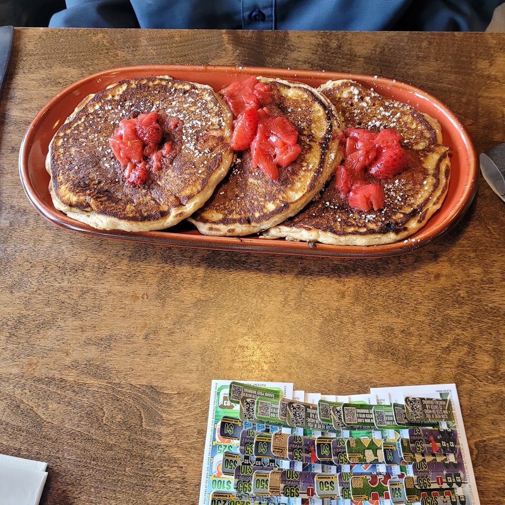 Awesome meals! Will absolutely recommend to all! My fiance and I got breakfast at 2pm and was amazing! His cowboy omelet was stout and perfectly made with tons of hash browns. My pancakes were so good, there must've been some vanilla and cinnamon in the batter, wow ❤️ My scrambled egg portion was actually too much but fluffy and delicious! Bacon perfect and crispy! Service just right as well, wish we would've tried this place sooner! Will come back to try lunch/dinner choices! Will highly recommend ❤️🤘