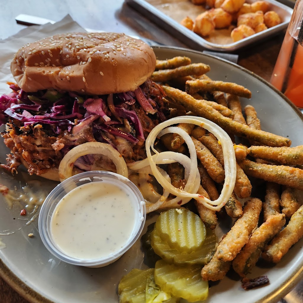 We had the Carolina bbq pork sandwich and country fried steak. Absolutely fire and we’d definitely come back.