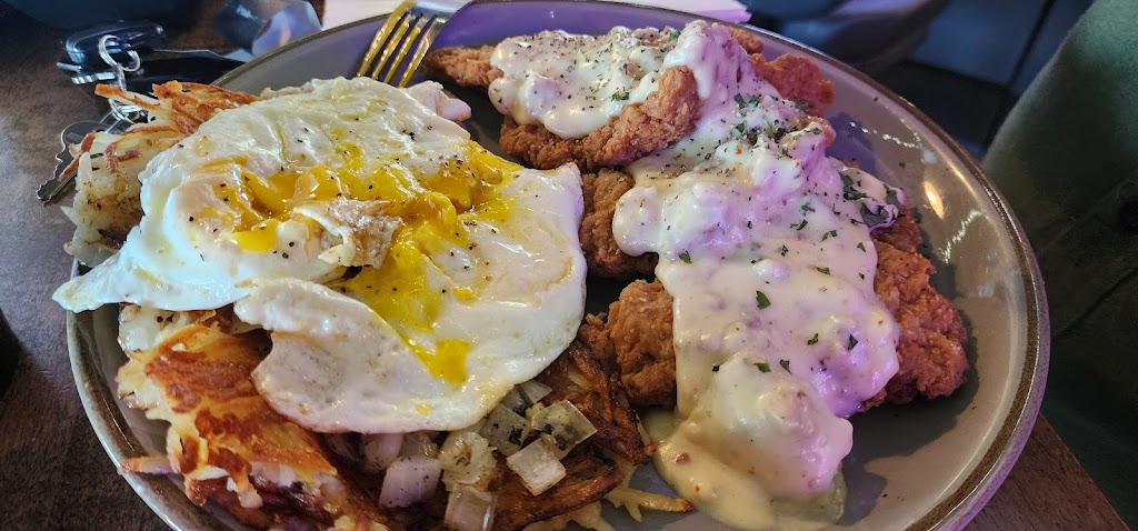 Rely good food my recommendation is get the fried chicken eggs Benedict with hash browns