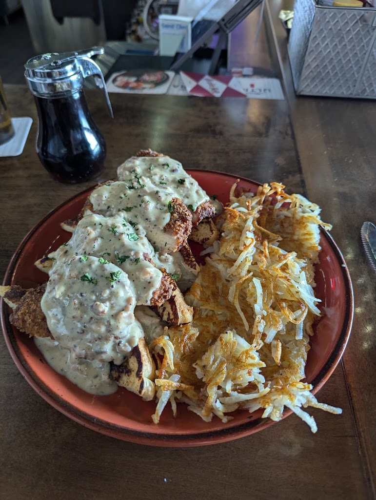I want so much to give this a higher rating but I was disappointed, the service was very rushed and minimal. The menu had a nice variety, the country fried steak was good but lacked gravy, and was crazy salty. I will give it another shot in the future, but the service definately was the reason for my review.