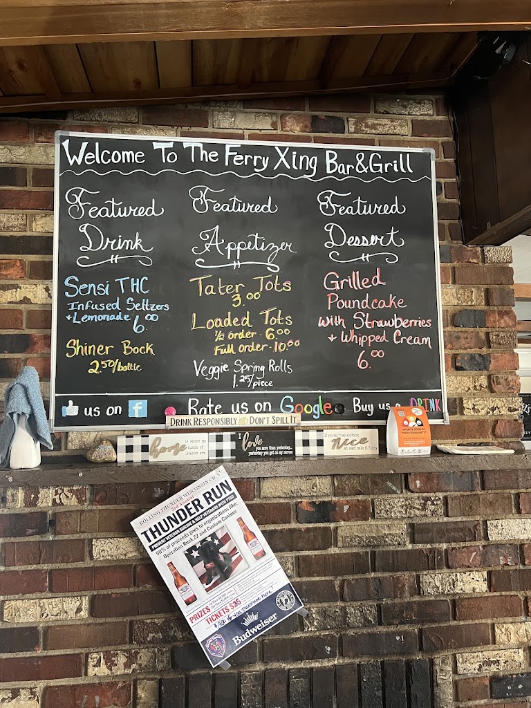 My mouth waters at the thought of my next burger at the Ferry Xing! Delicious! The staff are friendly and welcoming. The food and drinks are served fast and with a smile. It’s our favorite place for a burger.