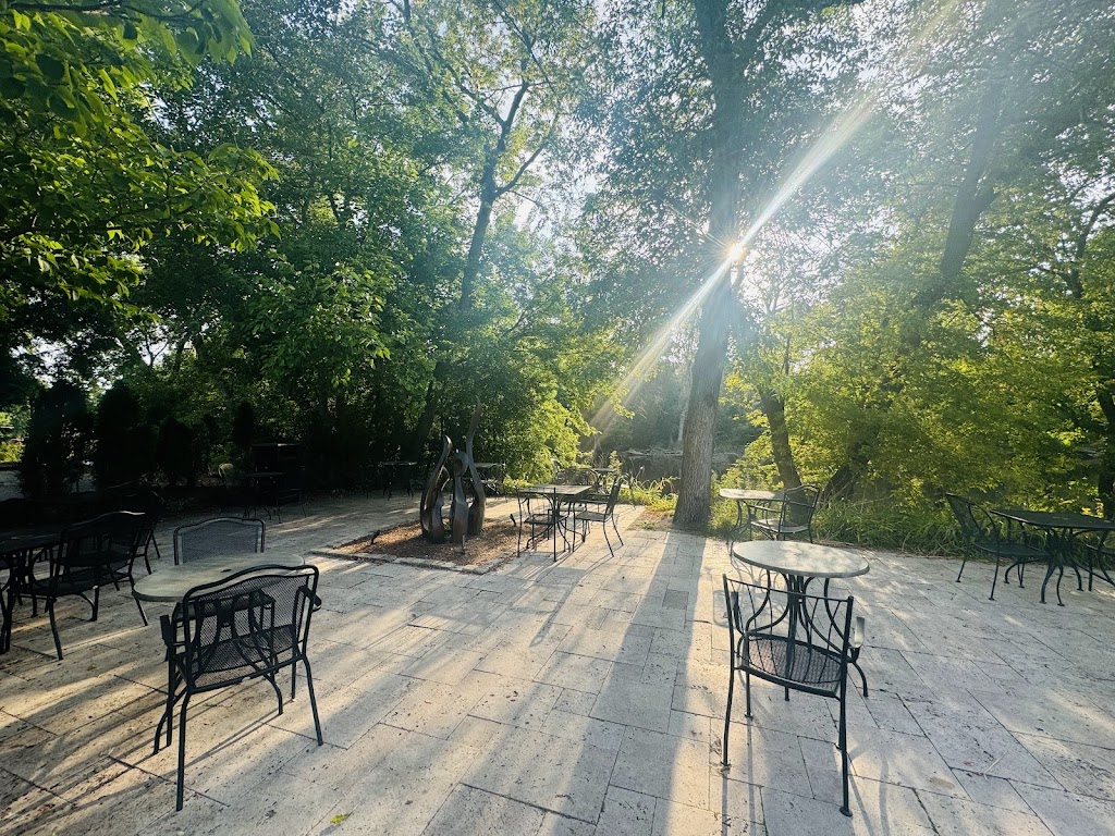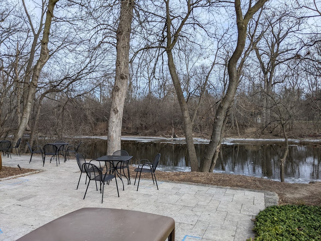 Great view of Milwaukee River and wildlife. Patio and addition are dog friendly. Bike repair rack and some tools ⁸on the premises. Good coffee and food. Helpful and friendly staff.