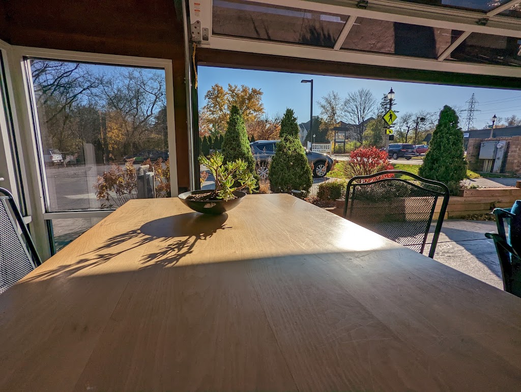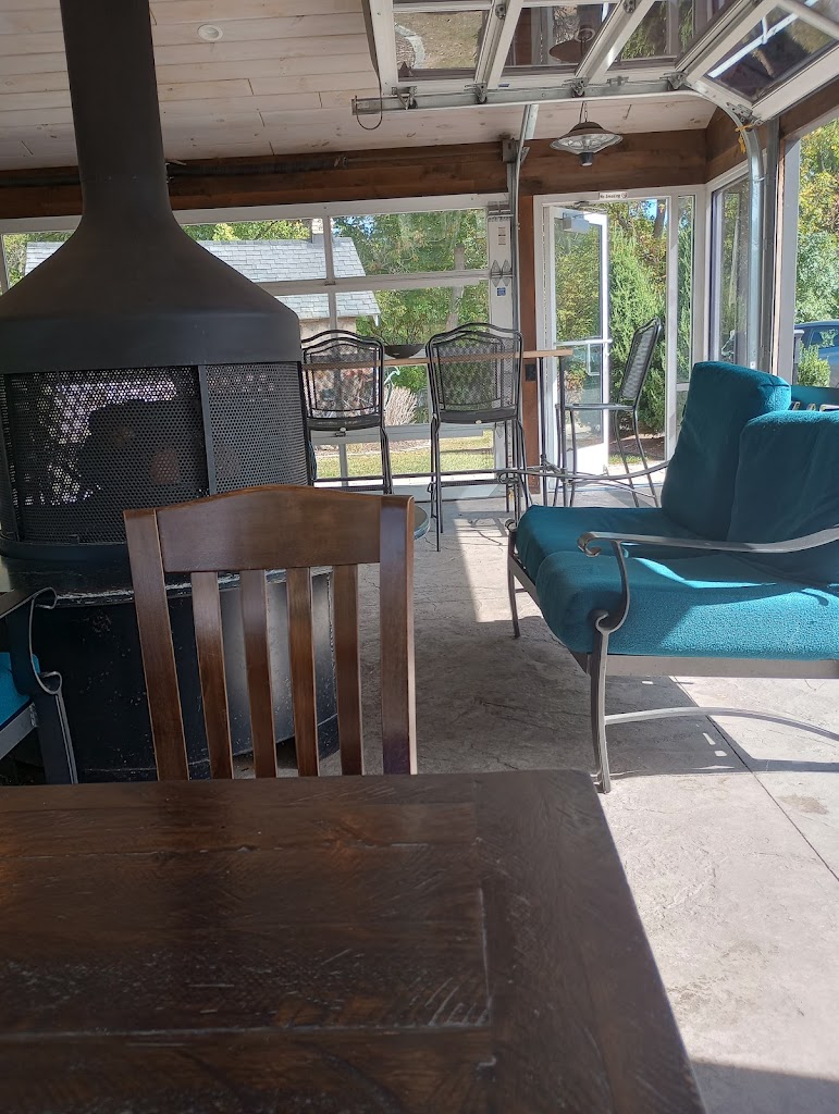One of the best outdoor spaces along the river to drink coffee. Great patio and sunroom…