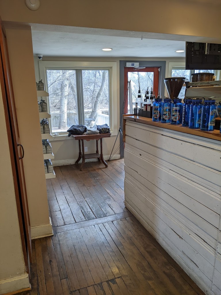 This place is awesome. The staff is great, and the atmosphere is perfect. You can take your coffee in cozy booth inside their colonial main building, on their patio next to the river, or in their beautiful new 4 season porch. I wish I'd gotten my barrista's name because I'd love to commend her personally, but everyone on staff seemed super efficient and friendly. Big fan.