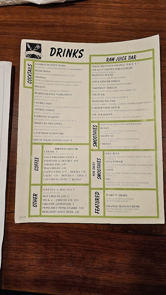 Great food. Excellent menu variety. Attentive staff. I like that that menu lists the "Field" partners names. Nice to know where the delicious food is coming from.