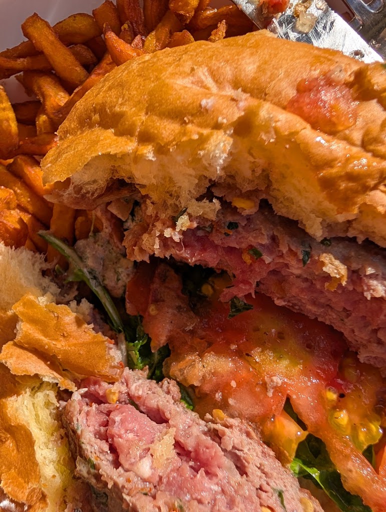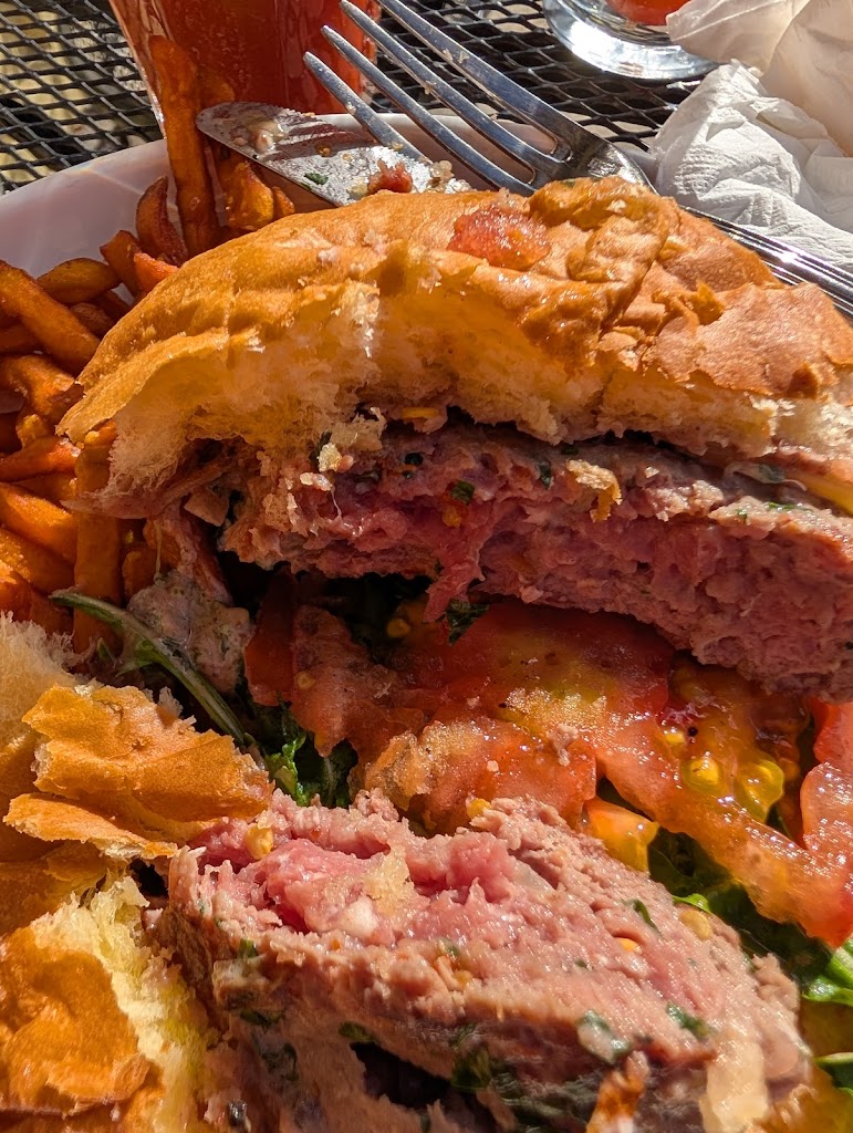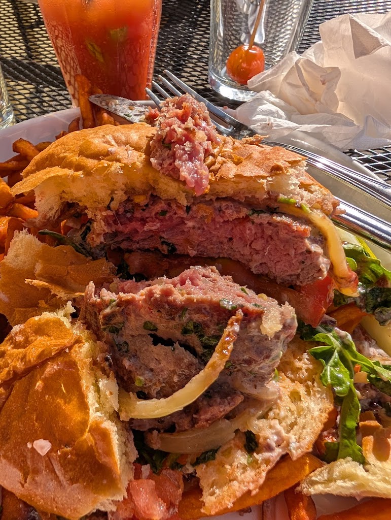 I ordered the lamb burger and it was completely raw in the middle, cold and red all the way through. I had already eaten part of it before realizing, and now I’m honestly concerned about getting sick. When I pointed it out, the waitress said it was just the texture of the meat and that they cook it medium rare, but it was clearly undercooked and unsafe for ground lamb. They did replace it and did not charge for the first one, and the second burger came out cooked properly, brown with a light pink center like it should be. However, waiting on the food took a long time after ordering and our waitress hardly checked on us during the meal. Even though they eventually made it right, the overall experience left me disappointed and uneasy about their food safety and service.
