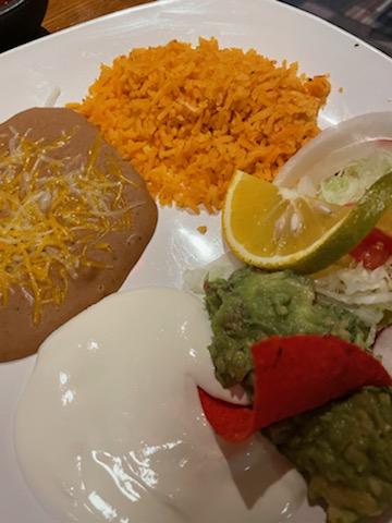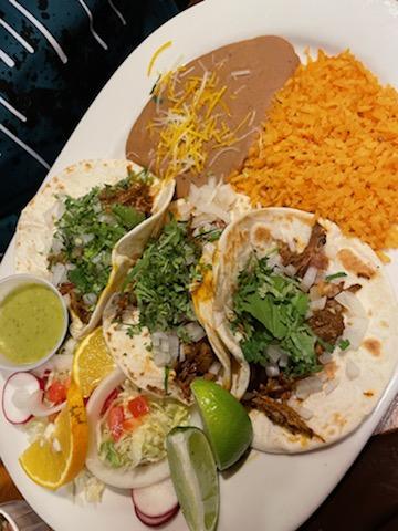 We were seated immediately and greeted with chips and salsa. We ordered lime margaritas on the rocks which were not that great. Drinks aside, we each got the taco dinner (al pastor, avocado, ground beef, and chicken). Our tacos were super good! The avocado was pretty plain so I added the rice and beans to give more flavor which was good. Overall we had great service, great food, just wouldn’t recommend the margaritas.