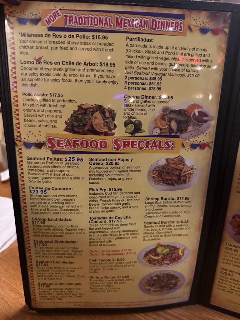 Good fish fry,good Mexican dishes.