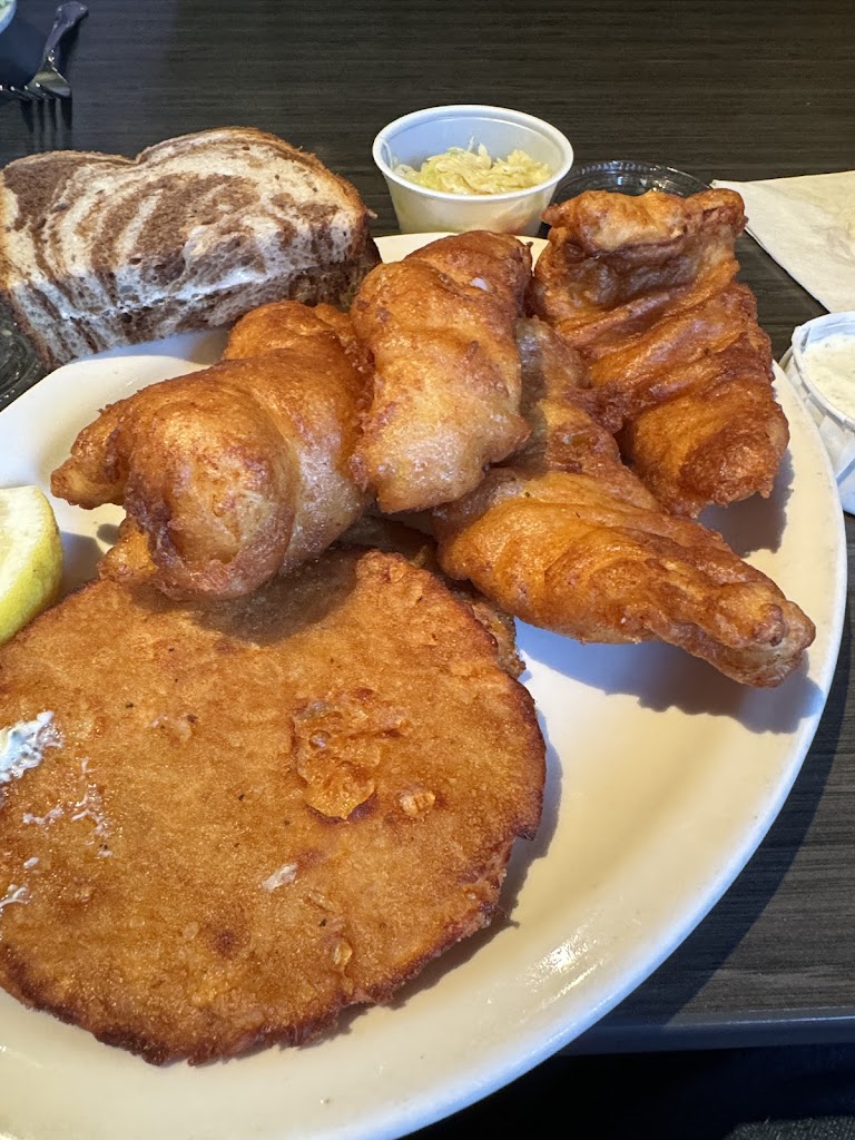Went for a fish fry. I ordered perch which was very good, however there tartar sauce is not the greatest! Potato pancakes were thin, hard and couldn't cut them with a fork!! Nasty! I don't like sweet/sour coleslaw. The rye bread was decent, but would like real butter and be able to butter it myself. Will not recommend them or be returning for any fish frys. We had a nice waitress, but they put us in that front area under glass. It was chilly.