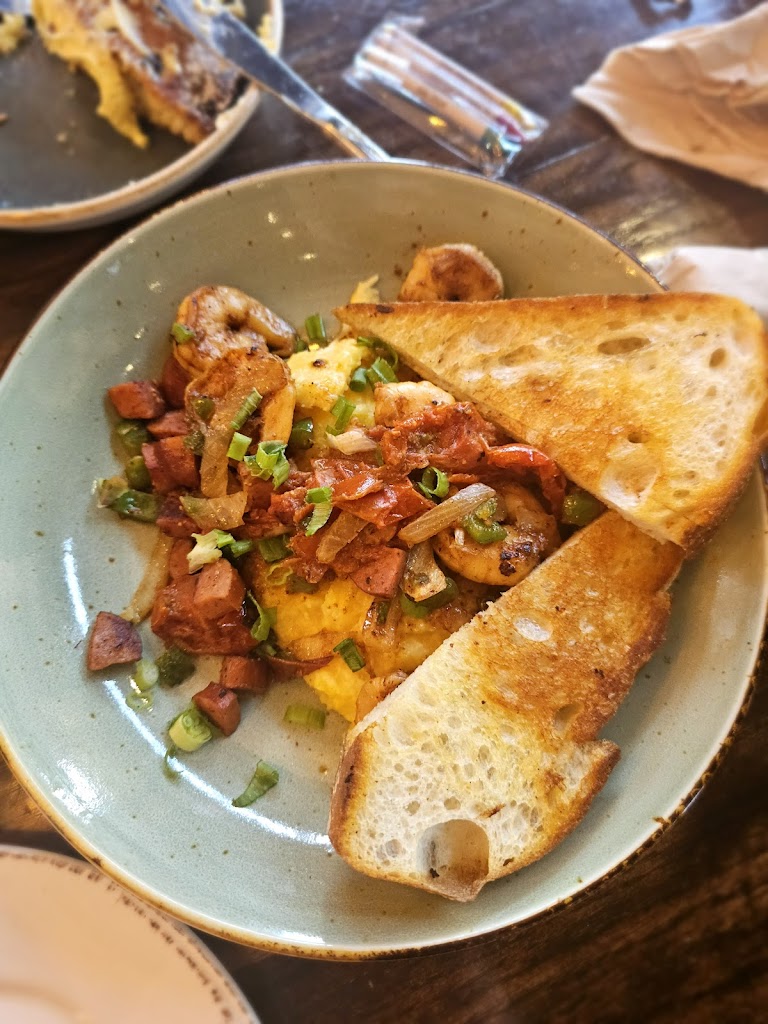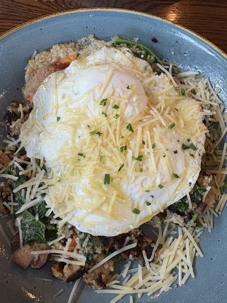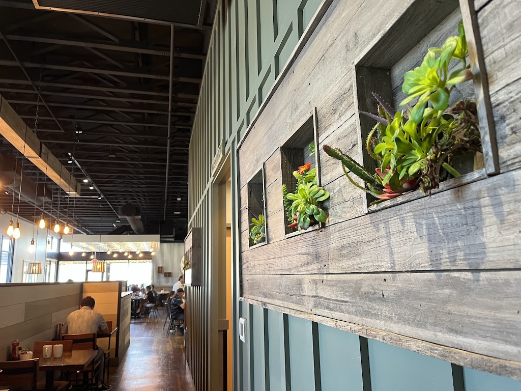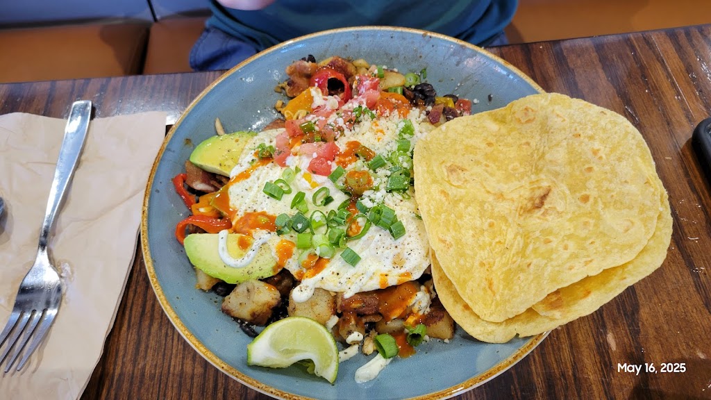 Not your usual bacon, eggs and toast breakfast. Enjoy the different menu items. The design makes it a pleasant place to relax. Really liked the large, roofed outdoor seating area.
