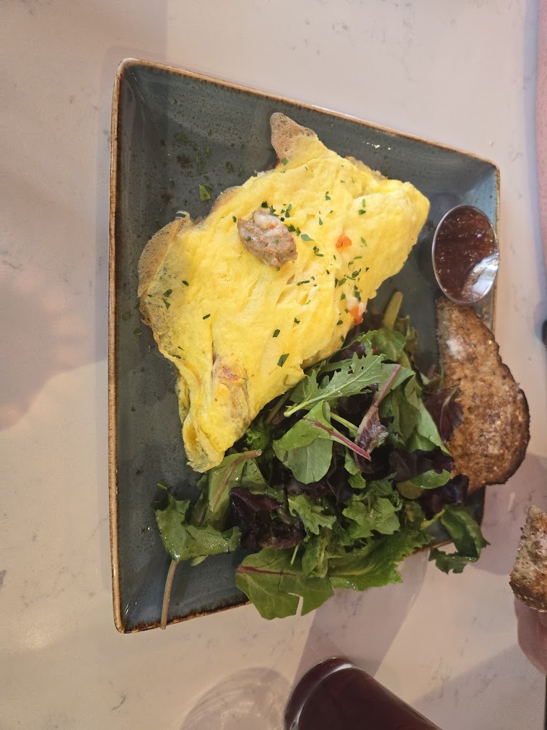 Sunday morning Breakfest. Was seated quickly. Omelet was very tasty and right portion. My wife and I enjoyed our morning there. Service was very good. Coffee pot and water carafe at the table