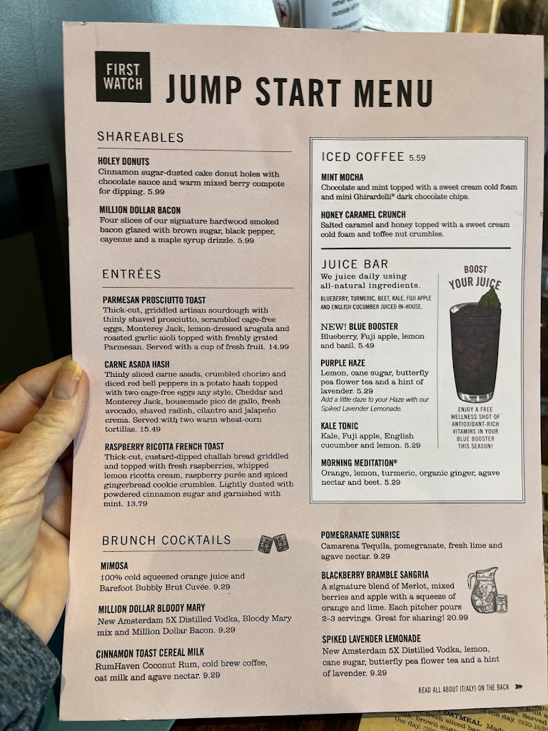 First Watch is always a favorite. Clean, friendly and the food is on point!!!