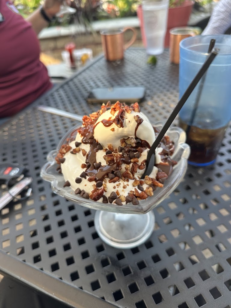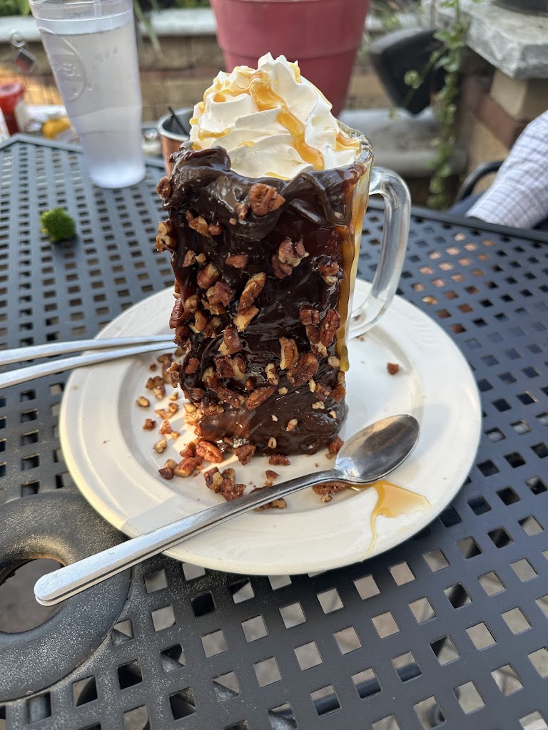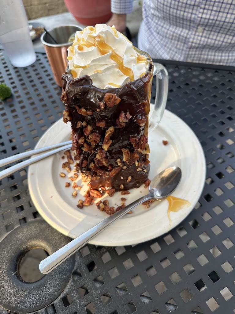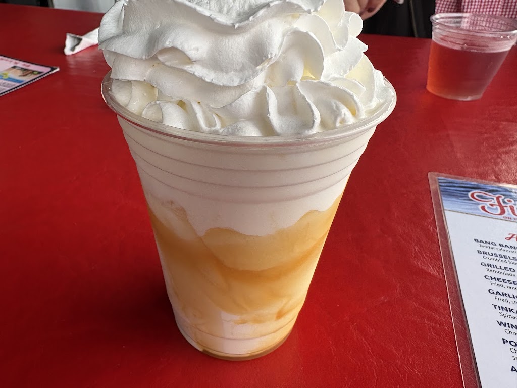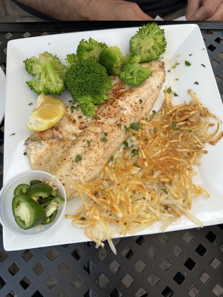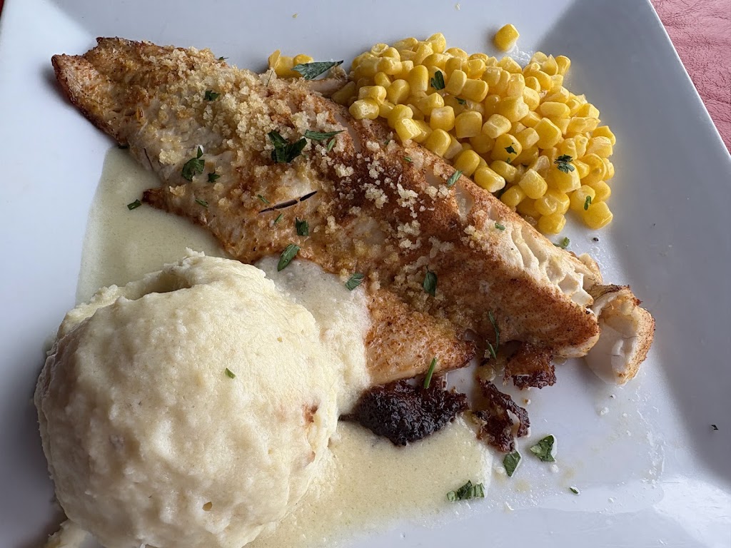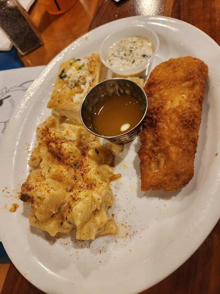 The fish was normal, and the sides were a little sweet, the huge deserts are so much fun though, there are games to plan so over all a fun experience