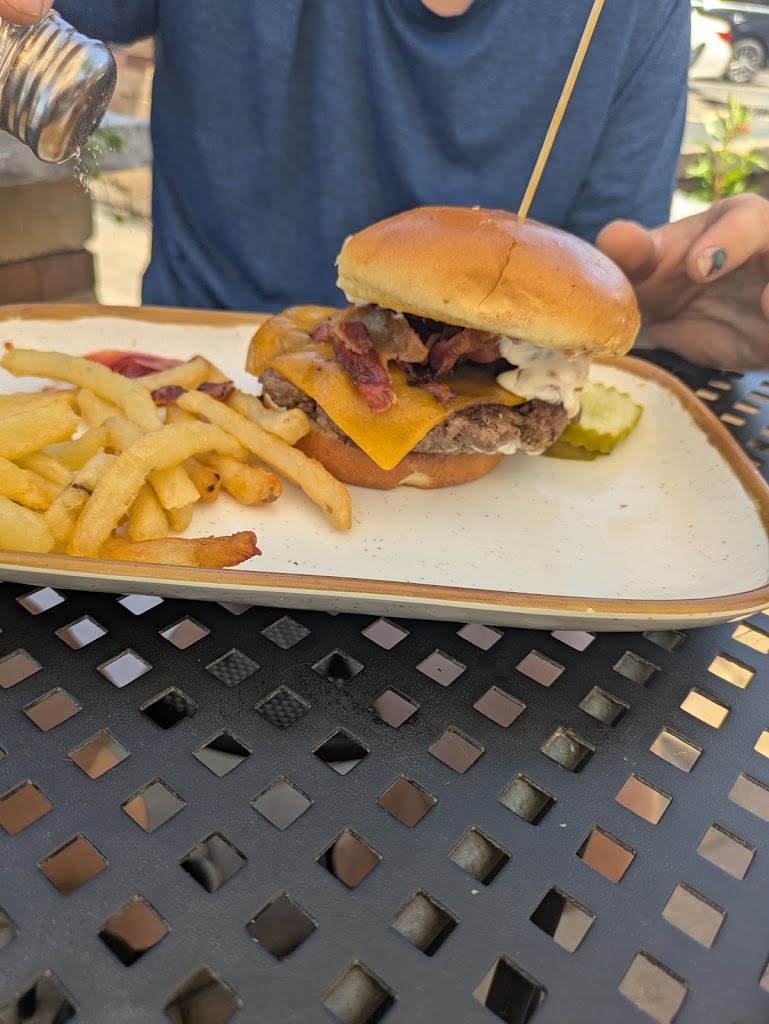 Horrible hamburger I ordered French Fries as well, they were hot but very very small portion. Food is over rated.