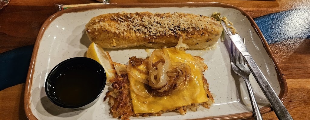 Ordered fish "dinner" - got ONE piece of fish and a baked potato - NO butter or margarine, NO tarter sauce, NO lemon slice for fish, NO dinner roll, NO coleslaw or baked beans - gat charged a fee for using credit card and zinged 18 % tip. NEVER AGAIN - What a rip off and $11 fir a bloody Mary. TERRIBLE EXPERIENCE!!! TERRIBLE!!!