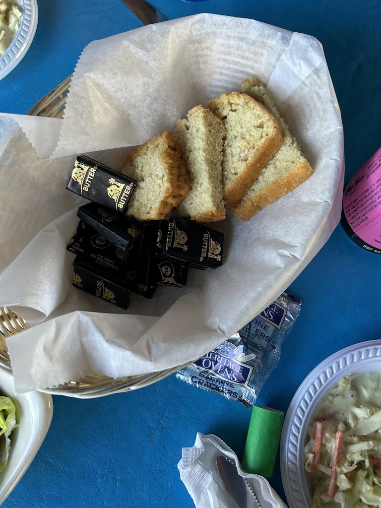 Good place. Salad bar. Across street from Lookout. Fried shrimp the best!