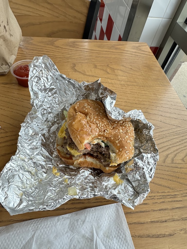 I like eating here. The burgers are juicy, fries are great and the atmosphere is nice.